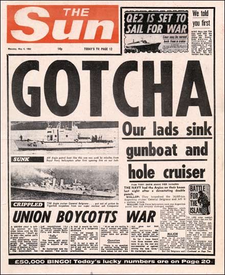 H 2α ΜαΪου ήταν η τραγικότερη ημέρα για το Αργεντινό Ναυτικό. Το παλιό καταδρομικό “Στρατηγός Μπελγκράνο” Αμερικανικής κατασκευής που εχρονολογείτο από την εποχή του Δευτέρου Παγκοσμίου Πολέμου, συνοδευόμενο από δύο παλιά αντιτορπιλικά κλάσης “‘Αλεν Σάμνερ” FRAM II (αντίστοιχα του Ελληνικού αντιτορπιλικού “Μιαούλης”), περιπολούσε λίγο νοτιότερα από τη ζώνη αποκλεισμού παρακολουθούμενο τις τελευταίες ημέρες από το πυρηνοκίνητο υποβρύχιο “Κόνκερορ” του Βασιλικού Ναυτικού.