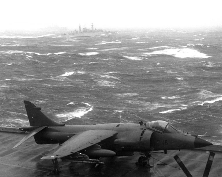 Σε χρόνο ρεκόρ συγκροτήθηκε η βασική δύναμη της Βρετανικής Αρμάδας που θα έπλεε προς το Νότιο Ατλαντικό με στόχο την ανακατάληψη των νησιών. ‘Ηταν χαρακτηριστικός ο βαθμός ετοιμότητας του Βασιλικού Ναυτικού που το απόγευμα της 2ας Απριλίου δηλαδή λίγες μόλις ώρες μετά τη γνωστοποίηση της Αργεντινής επίθεσης στα Φόκλαντς είχε θέσει σε πλήρη ετοιμότητα την Νο 800 Μοίρα (Ση Χάριερ) στο αεροπλανοφόρο “Ερμής”.