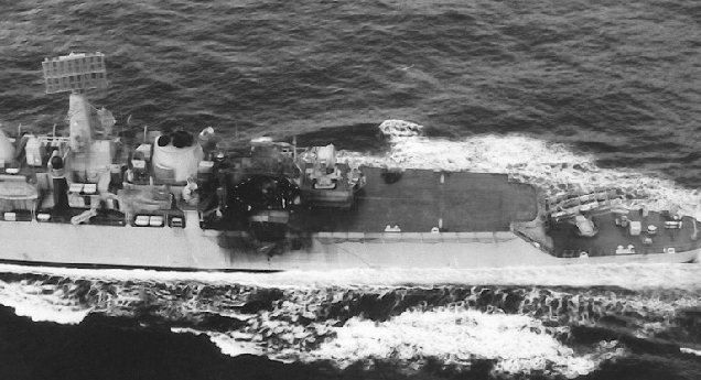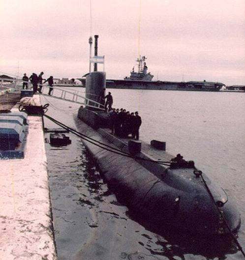 λιβρών (227 κιλών), ήταν υπολογίσιμη απειλή για τους Βρετανούς και στις 2 ΜαΪου ήταν έτοιμα να εξαπολύσουν επίθεση εναντίον των Βρετανικών πλοίων που βρίσκονταν περίπου 300 μίλια (556 χλμ.) νότια. Τα Βρετανικά πλοία είχαν εντοπιστεί από τα S-2E
