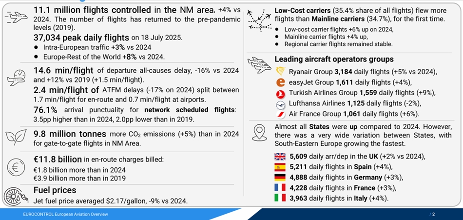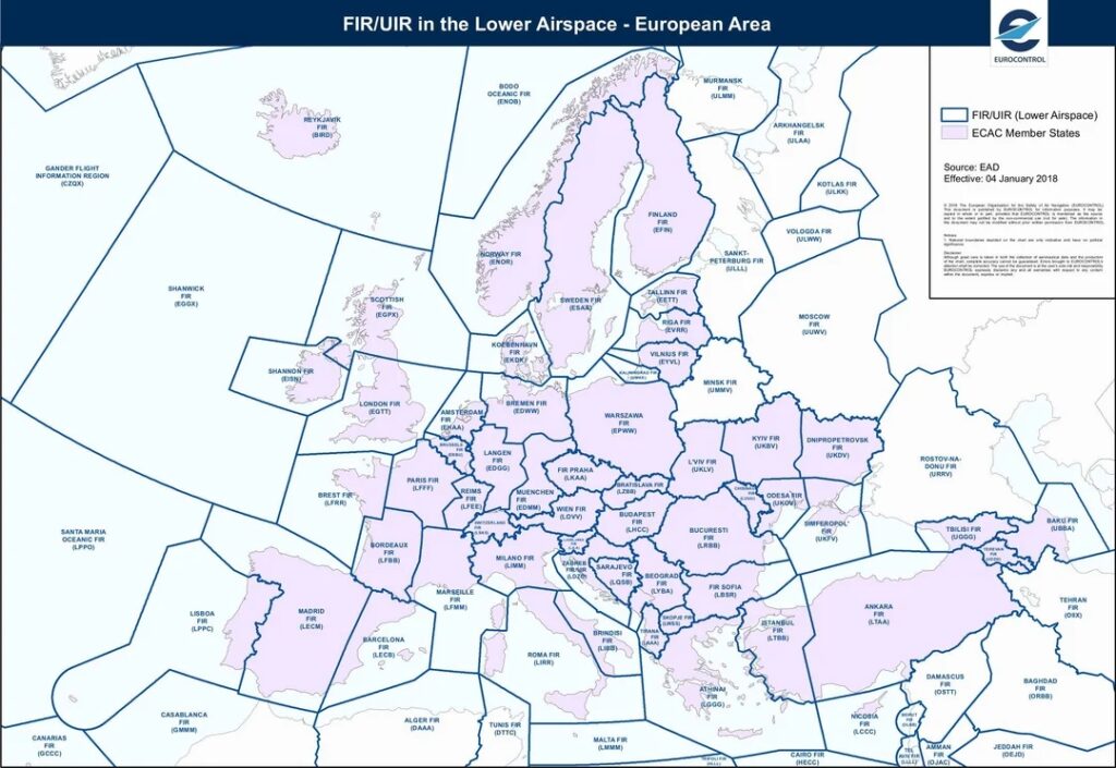 O ευρωπαϊκός εναέριος χώρος με τα βασικά του δεδόμένα, σήμερα.