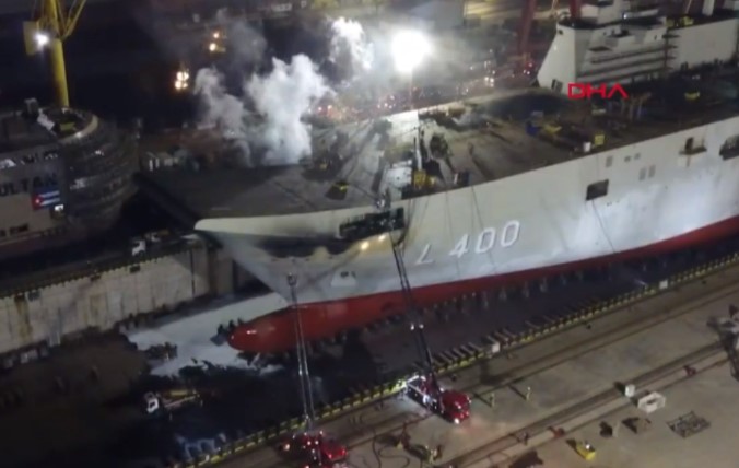 Πυρκαγιά ξέσπασε στα ναυπηγεία της Τούζλα στην Κωνσταντινούπολη σήμερα τα ξημερώματα στο ελικοπτεροφόρο Anadolu (L400) του τουρκικού Ναυτικού. Η πυρκαγιά περιορίστηκε έγκαιρα από εργαζομένους των ναυπηγείων καθώς και πυροσβεστικές δυνάμεις που έσπευσαν στο σημείο.