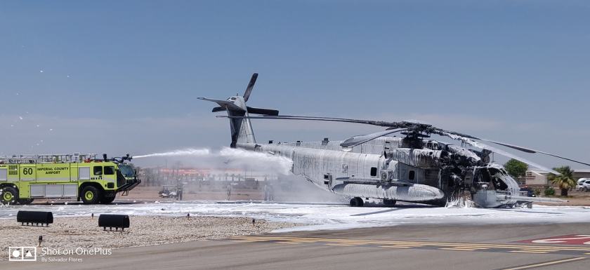 Το ελικόπτερο στην συνέχεια πραγματοποίησε αναγκαστική προσγείωση στο αεροδρόμιο Imperial County της περιοχής, σύμφωνα με δελτίο Τύπου που εξέδωσε το Σώμα. Κανείς δεν τραυματίστηκε στο συγκεκριμένο συμβάν ενώ η φωτιά κατασβέστηκε από άντρες της πυροσβεστικής υπηρεσίας του αεροδρομίου.