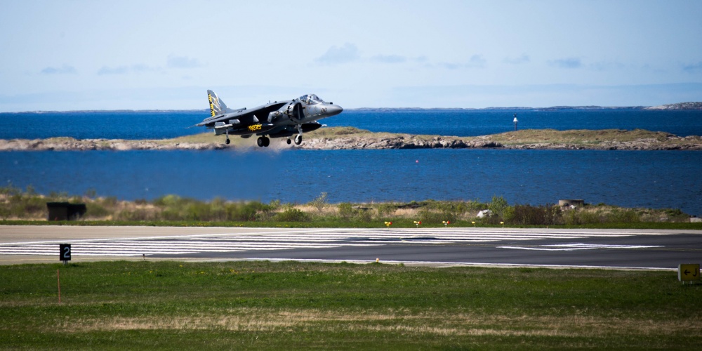 Μαχητικά αεροσκάφη AV-8B Harrier II του Σώματος των Αμερικανών Πεζοναυτών μετέβησαν στις βόρειες εσχατιές της Νορβηγικής νησιωτικής ακτογραμμής για να συμμετάσχουν στην διεθνή νατοϊκή άσκηση με την εύλωττη ονομασία Fjord Fury.