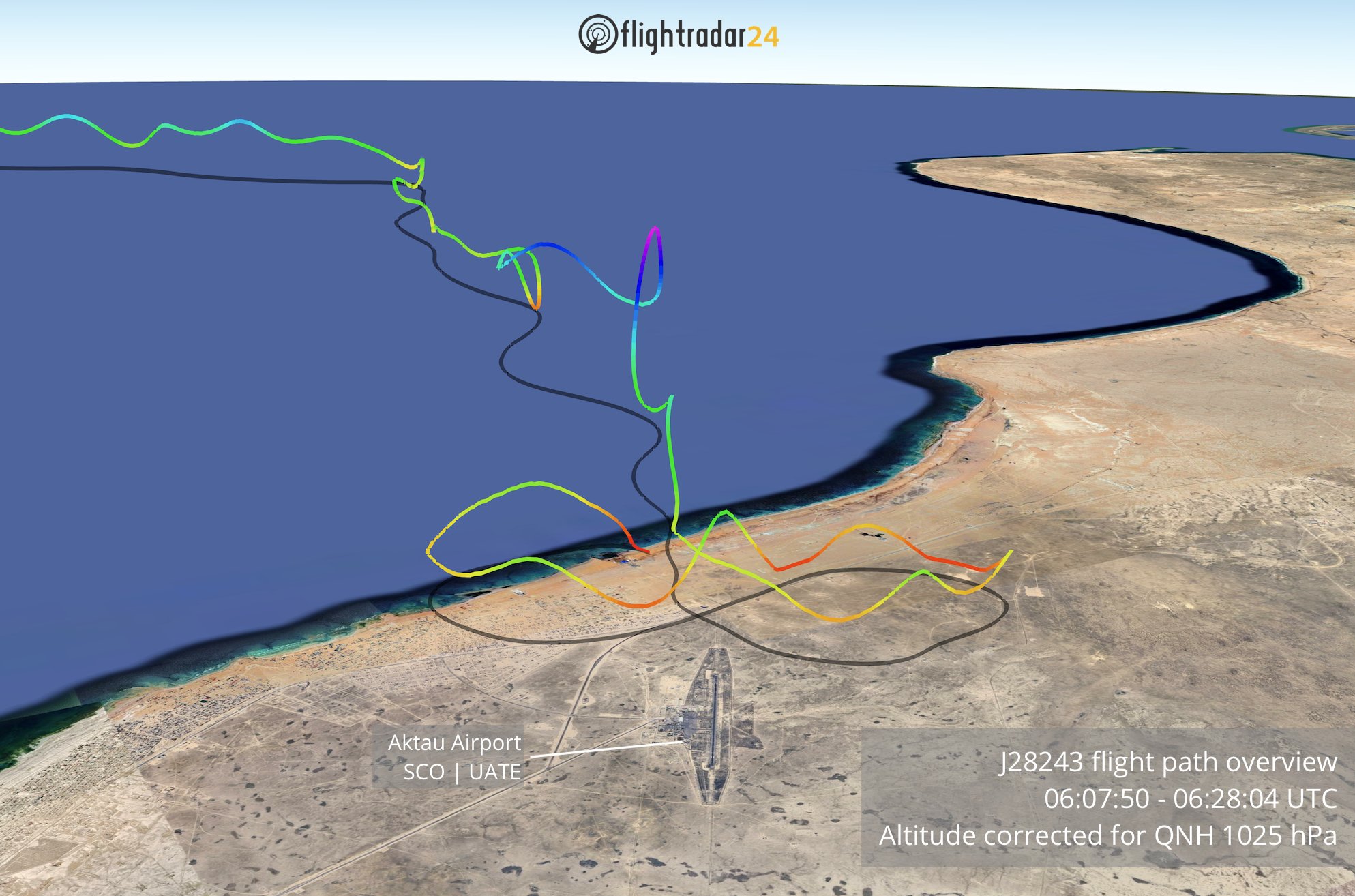 Σε αυτά τα 34 λεπτά, μέρος των οποίων το Embraer πετούσε πάνω από ρωσικό εναέριο χώρο πριν βγει πάνω από την Κασπία θάλασσα, η συμπεριφορά του, άρα και η κατάσταση στην οποία βρισκόταν δεν είναι γνωστή. Εκτιμάται όμως ότι ήταν η ίδια με αυτή που καταγράφεται στη συνέχεια από την 05:14Ζ έως την 06:28Z.