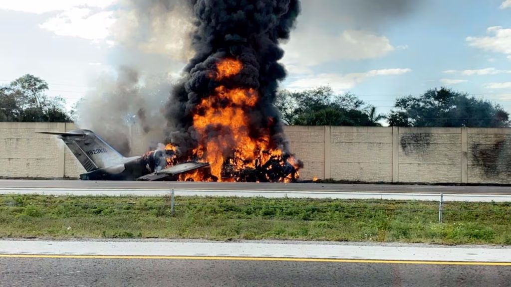 Δύο άνθρωποι σκοτώθηκαν όταν αεροσκάφος συνετρίβη χθες Παρασκευή σε πολυσύχναστο αυτοκινητόδρομο στη Φλόριδας και τυλίχθηκε στις φλόγες μετά τη σύγκρουσή του με διερχόμενο όχημα.