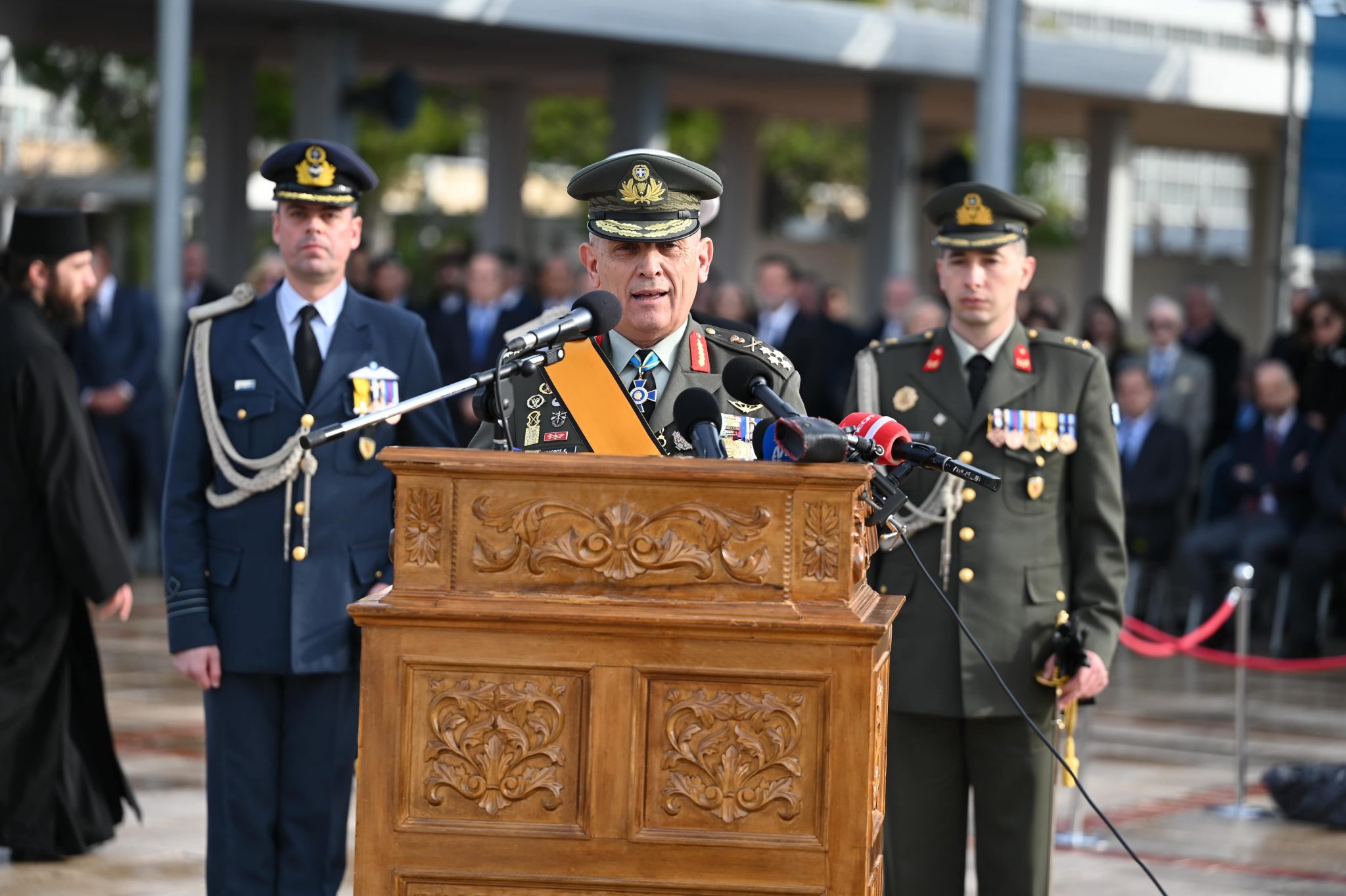 Αισθάνομαι ιδιαίτερα ευτυχής αλλά και συγκινημένος διότι αυτή η τελετή λαμβάνει χώρα ακριβώς στον ίδιο χώρο, στον οποίον παρέλαβα το ξίφος μου ως νεαρός Ανθυπολοχαγός Πεζικού της Τάξεως 1983. Της πρώτης τάξεως Ανθυπολοχαγών που αποφοιτούσε από την νέα, τότε Σχολή Ευελπίδων εδώ στη Βάρη, την παντοτινή όμως Κιβωτό των Καλών Ελπίδων του Έθνους.