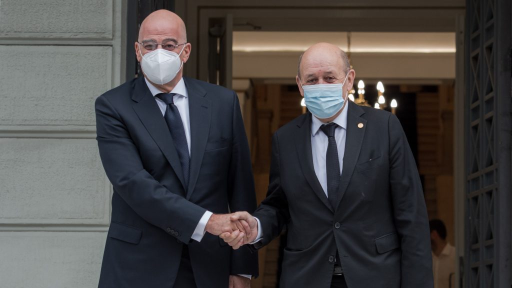 Foreign Minister Nikos Dendias on Friday sent a clear message to EU member-states “to follow France’s example and not supply arms to countries that threaten war”, especially the threats were against other countries in the EU, after his meeting with his French counterpart Jean-Yves Le Drian in Athens.