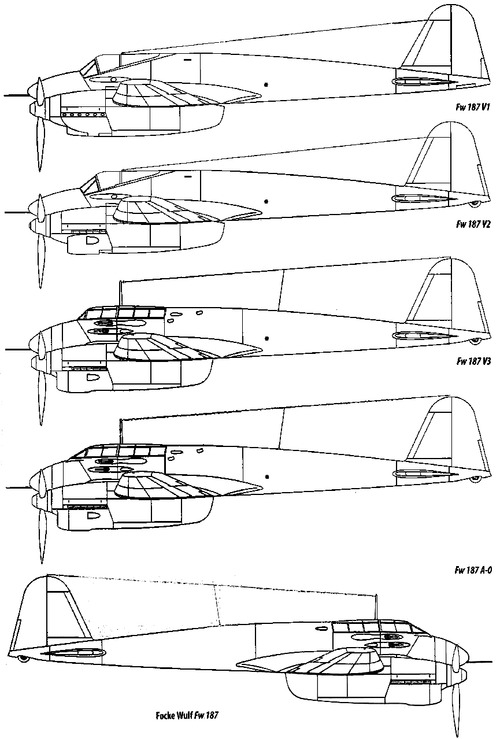 Μια σειρά τριών ακόμη πρωτοτύπων της σειράς V παρήχθη, με τα δύο πρώτα να δοκιμάζονται το καλοκαίρι και το Φθινώπορο αντίστοιχα του 1938. To τελευταίο, Fw 187 V6, έγινε αποδέκτης των περισσοτέρων τροποποιήσεων, με κυριότερη αυτήν των DB-600. Η παρθενική του πτήση έλαβε χώρα στις αρχές του 1939. Παρά τα προβλήματα ψύξης τους που παρουσίαζε, έφτανε την τελική ταχύτητα των 634 χιλ. σε μεγάλο υψόμετρο, καθιστώντας το ως το γρηγορότερο μαχητικό της Luftwaffe έως εκείνη τη στιγμή. Παρ’ όλα αυτά, δεν θα μπορούσε να εξελιχθεί περαιτέρω, λόγω των περιορισμένων σε διαθεσιμότητα συγκεκριμένων κινητήρων.