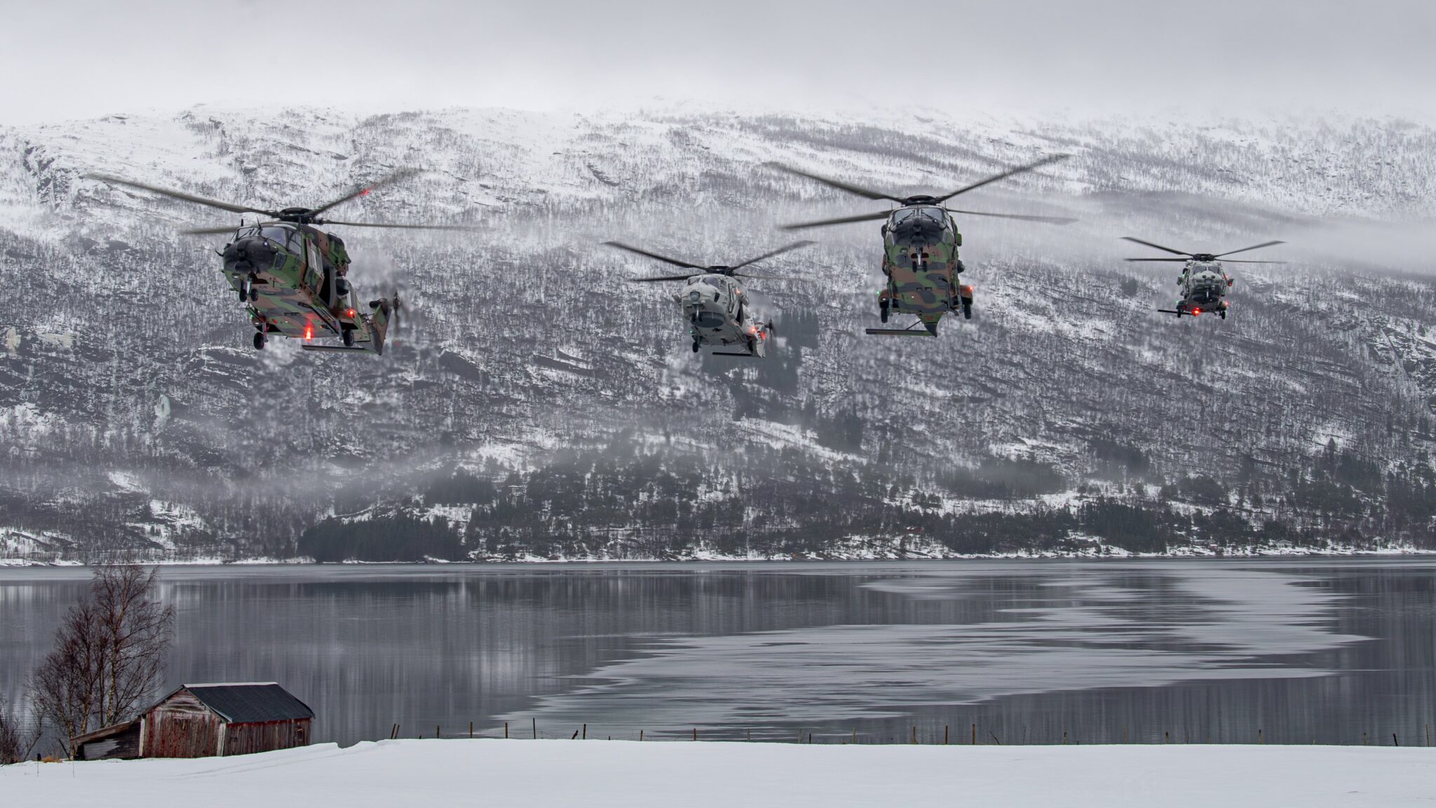 Πτήση σε σχηματισμό γαλλικών NH90 TTH Caïman και ολλανδικών NH90 NFH/TNFH μέσα στα νορβηγικά φιόρδ σε ΝΑΤΟϊκή, υπό εξέλιξη άσκηση.
