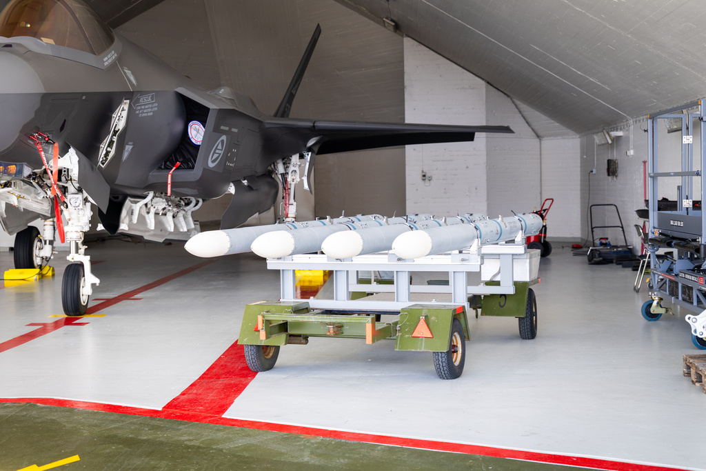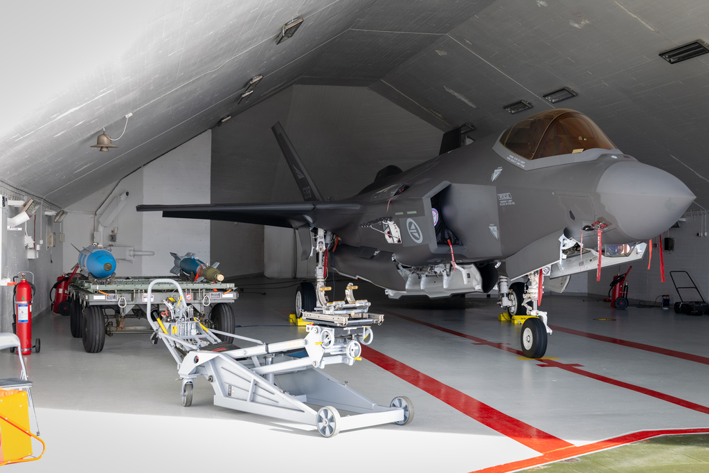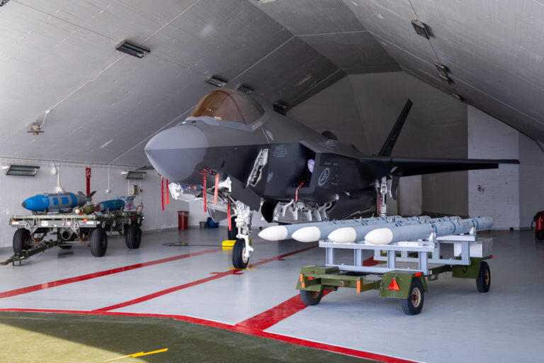 Νορβηγικό F-35A σε καταφύγιο της Αεροπορικής Βάσης Όρλαντ, με GBU-31, GBU-12 και AIM-120. Φωτογραφίες: Arne Marius Alm