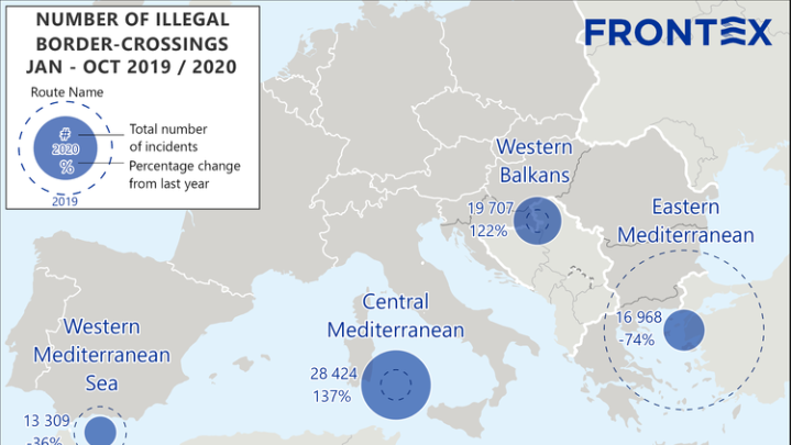 Τη ραγδαία πτώση των μεταναστευτικών ροών στην Ελλάδα καταγράφουν τα στατιστικά στοιχεία της Frontex για το δεκάμηνο Ιανουαρίου-Οκτωβρίου του 2020. Συγκεκριμένα, σημειώθηκαν περί τις 17.000 παράνομες διελεύσεις, με αποτέλεσμα ο αριθμός τους να είναι μειωμένος κατά 74% σε σχέση με την αντίστοιχη περσινή περίοδο.