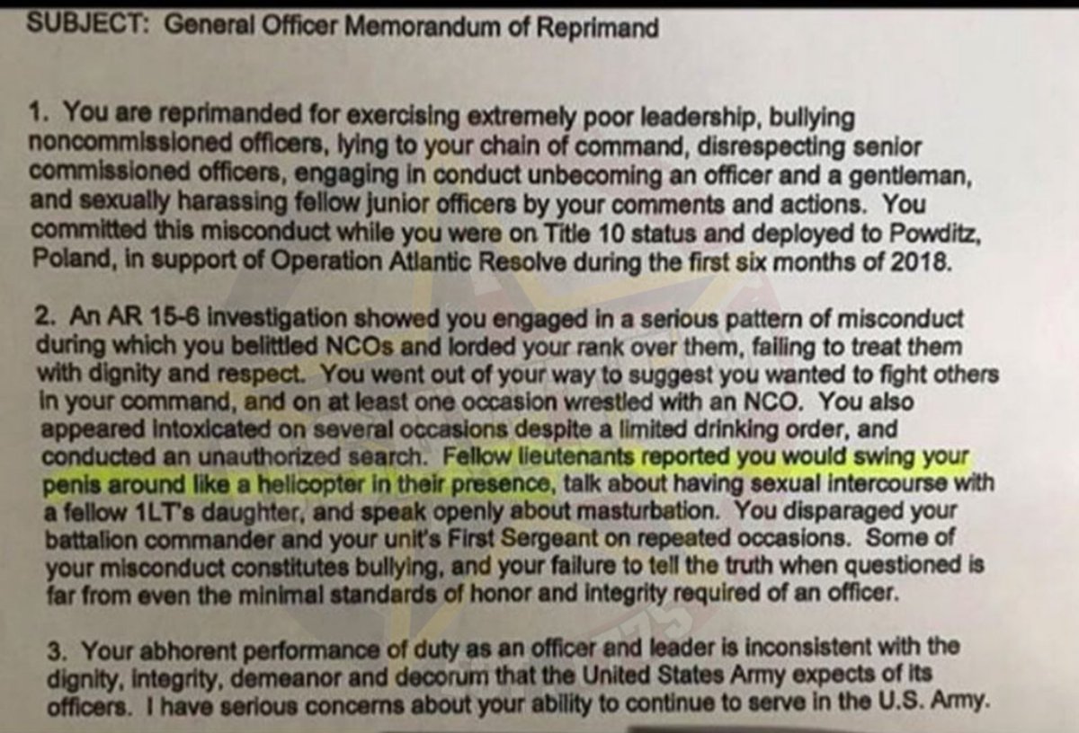 Ένας μη κατονομαζόμενος Αμερικανός υπολοχαγός, επιπλήχτηκε μέσω σχετικής αναφοράς, διότι αποδείχθηκε αρκετά “μουρντάρης”.