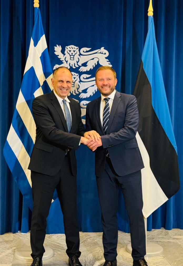 Το εξαιρετικό επίπεδο των σχέσεων Ελλάδας και Εσθονίας τόνισε ο υπουργός Εξωτερικών Γιώργος Γεραπετρίτης στις δηλώσεις του μετά το πέρας της συνάντησής του με τον υπουργό Εξωτερικών της Εσθονίας, Margus Tsahkna, στο Ταλίν.