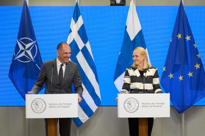 Επιδίωξη τόσο της Ελλάδας όσο και της Φινλανδίας είναι «μια ισχυρότερη, πιο ανθεκτική και στρατηγικά αυτόνομη Ευρώπη, γεγονός που συνεπάγεται ένα ισχυρό ευρωπαϊκό σύστημα άμυνας με αυξημένες δυνατότητες και εργαζόμαστε σκληρά προς αυτή την κατεύθυνση», ανέφερε σε δηλώσεις του ο υπουργός Εξωτερικών Γιώργος Γεραπετρίτης, μετά τη συνάντησή του με την υπουργό Εξωτερικών της Φινλανδίας Ελίνα Βάλτονεν (Elina Valtonen) στο Ελσίνκι.