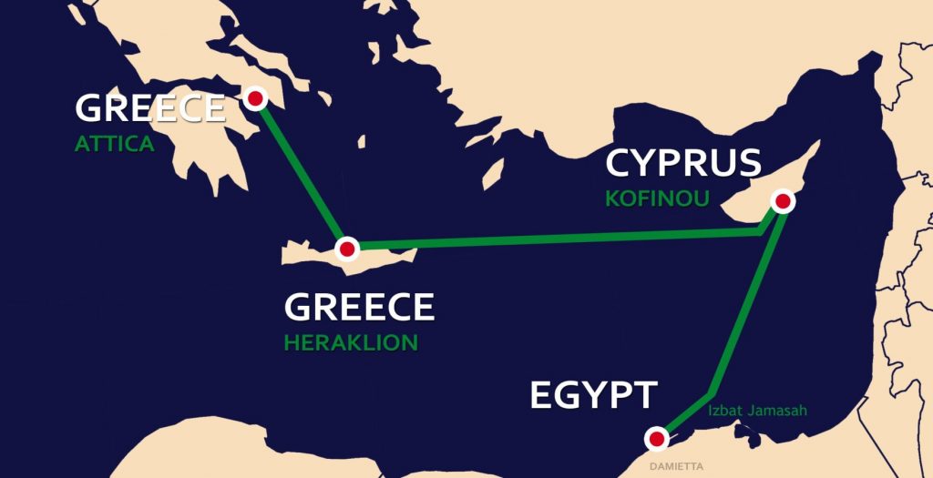 Ο κ. Γεραπετρίτης υπογράμμισε ότι το καλώδιο θα περνά μέσα από χωρικά ύδατα Ελλάδας και Κύπρου και μέσα σε διεθνή ύδατα ελληνικής ΑΟΖ. Ερωτηθείς για τα γεγονότα της Κάσου, απάντησε ότι όταν υπήρχε προγραμματισμός για να βγει στην ελληνική ΑΟΖ, «η Τουρκία, η οποία επικαλείται αξιώσεις που προκύπτουν από το παράνομο και ανυπόστατο τουρκολιβυκό μνημόνιο, έστειλε πολεμικά πλοία που βρίσκονταν σε απόσταση και επιτηρούσαν την κατάσταση».