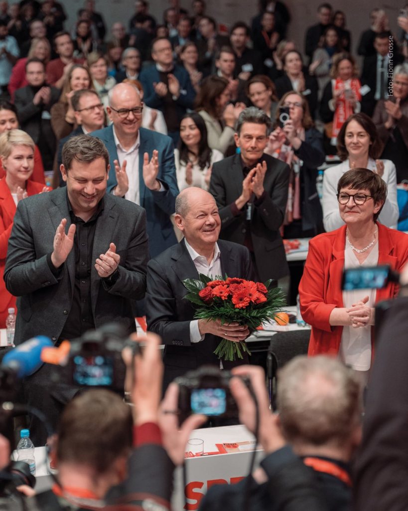 Μιλώντας στους συνέδρους ο Όλαφ Σολτς περιέγραψε το SPD ως κόμμα «κανονικών» ανθρώπων και σημείωσε κατ’ επανάληψη ότι οι επικείμενες εκλογές αποτελούν «απόφαση κατεύθυνσης» για την Γερμανία. «Η παγκόσμια κατάσταση είναι αναθεματισμένα σοβαρή και σε αυτό το πλαίσιο απαιτείται η κυβέρνηση να είναι προσεκτική, σαφής και έμπειρη», δήλωσε ο καγκελάριος και έκανε λόγο για «ανησυχητικές εξελίξεις», αναφερόμενος στον πόλεμο στην Ουκρανία, στην άνοδο των ακροδεξιών και λαϊκιστικών δυνάμεων σε πολλές χώρες όπως η Αυστρία, αλλά και σε δυνάμεις στις ΗΠΑ, οι οποίες, όπως είπε «εργάζονται πολύ στοχευμένα για να καταστρέψουν τους δημοκρατικούς θεσμούς της Δύσης. Σχετικά με τις πρόσφατες δηλώσεις του εκλεγμένου προέδρου των ΗΠΑ Ντόναλντ Τραμπ, ο Όλαφ Σολτς επανέλαβε ότι «το απαραβίαστο των συνόρων ισχύει για κάθε χώρα και αυτή την αρχή πρέπει να τηρεί κάθε κράτος είτε είναι μικρό είτε πολύ μεγάλο και ισχυρό». Με το βλέμμα στην Ουκρανία έκανε λόγο για «ανηλεή επιθετικό πόλεμο» της Ρωσίας και πρόσθεσε ότι «εάν ο (Βλαντίμιρ) Πούτιν καταφέρνει να αλλάζει σύνορα διά της βίας, τότε θα βρίσκεται σε μεγάλο κίνδυνο η ασφάλεια της Ευρώπης στο σύνολό της».