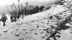 Αλλά καθ΄ ήν στιγμήν βαδίζουμε είς τα καταληφθέντα υψώματα του 1.700 υπέστην πολεμικόν ατύχημα, βεβαίως όχι πολύ σοβαρό και τας πρώτας πρακτικάς βοήθειας, μου τας παρείχε ο συνάδελφός μου και πατριώτης Νίκος Κάτσανος, οδηγήσας με εις το σκεπασμένο από χιόνι αντίσκηνο.