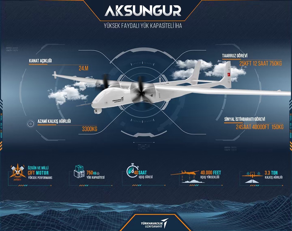 Η κρατική αεροναυπηγική εταιρεία Turkish Aerospace Industries (ΤΑΙ), σχεδιάζει να αναπτύξει το πρώτο υπερηχητικό UAV της χώρας. Ήδη στα πλαίσια της διεθνούς έκθεσης IDEF είχε παρουσιάσει ένα νέο σχέδιο, το «Aksungur» που είναι ένα συμβατικής σχεδίασης UAV.