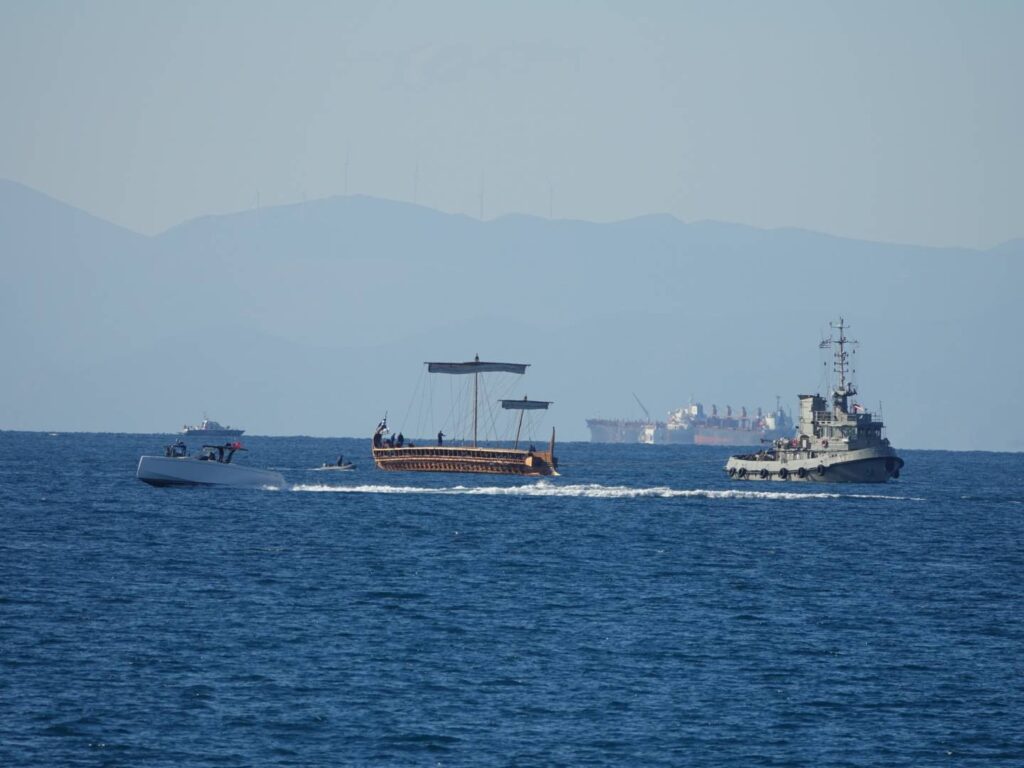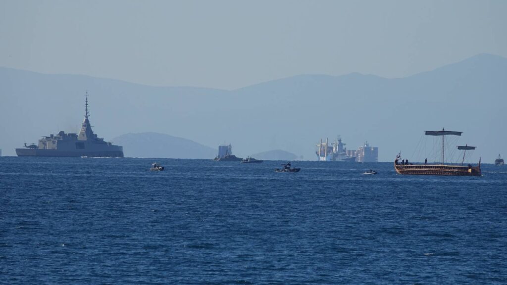 Μετά την ολοκλήρωση της τελετής η φρεγάτα διήλθε μεταξύ Ψυττάλειας, Αταλάντης και Κυνοσούρας, στο δίαυλο όπου έγινε η ναυμαχία της Σαλαμίνας με σκοπό να καταπλεύσει στον Ναύσταθμο.