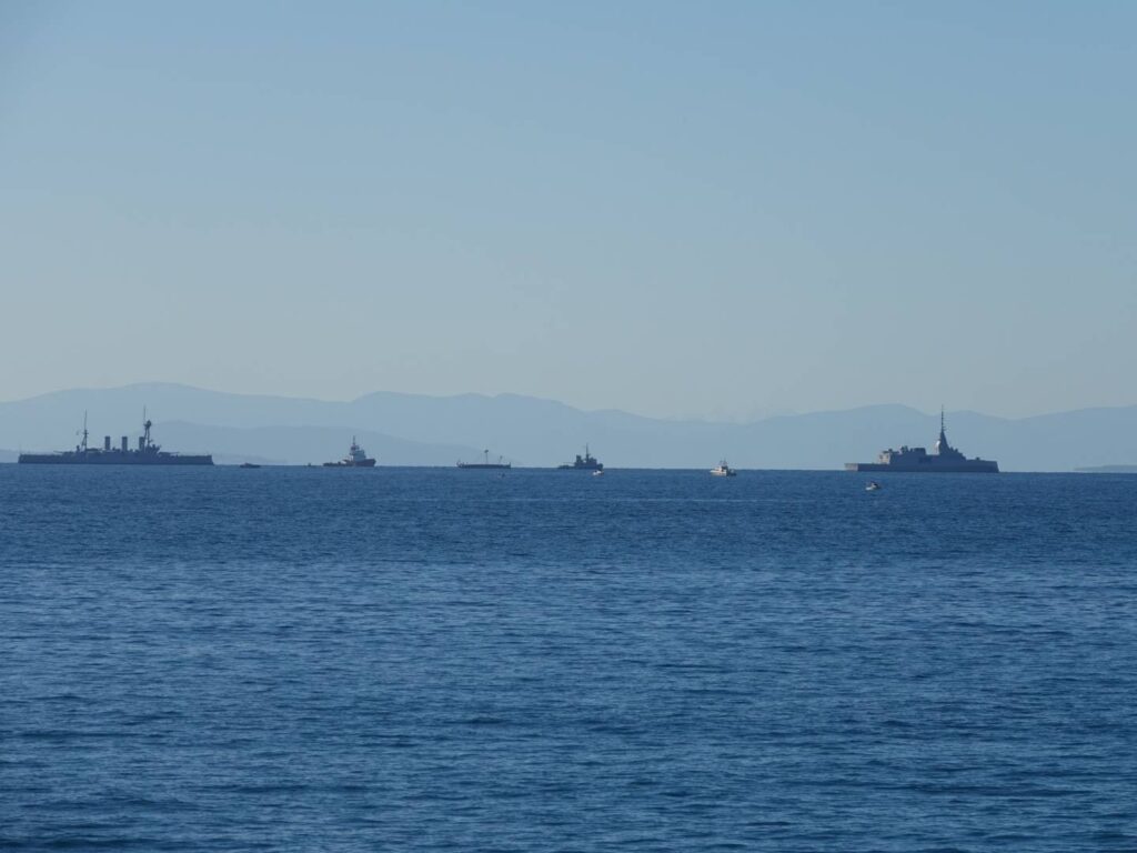 Την Φ/Γ ΚΙΜΩΝ υποδέχθηκαν σε σχηματισμό δύο φρεγάτες, δύο ταχέα περιπολικά κατευθυνόμενων βλημάτων, δύο κανονιοφόροι και δύο σκάφη ανορθόδοξου πολέμου.