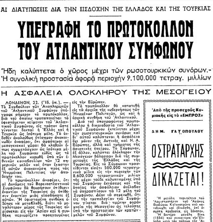 Η Ελληνική Βουλή επικύρωσε τη συμφωνία ένταξης της χώρας μας στο ΝΑΤΟ στις 18 Φεβρουαρίου 1952, επί κυβερνήσεως Νικόλαου Πλαστήρα.
