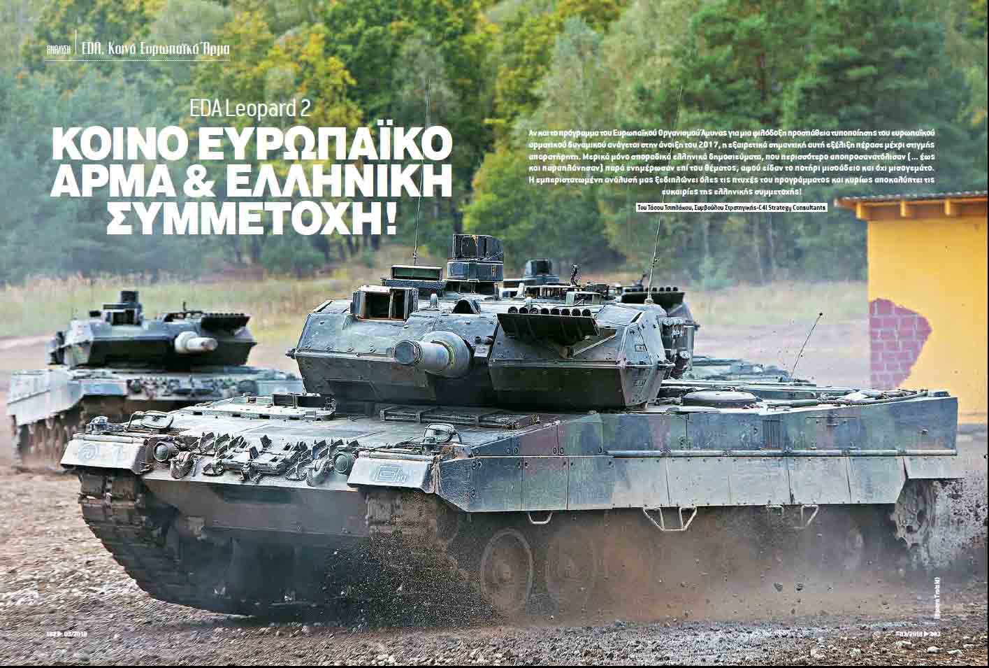 Αν και το πρόγραμμα του Ευρωπαϊκού Οργανισμού Άμυνας για μια φιλόδοξη προσπάθεια τυποποίησης του ευρωπαϊκού αρματικού δυναμικού ανάγεται στην άνοιξη του 2017, η εξαιρετικά σημαντική αυτή εξέλιξη πέρασε μέχρι στιγμής απαρατήρητη. Μερικά μόνο σποραδικά ελληνικά δημοσιεύματα, που περισσότερο αποπροσανατόλισαν (… έως και παραπλάνησαν) παρά ενημέρωσαν επί του θέματος, αφού είδαν το ποτήρι μισοάδειο και όχι μισογεμάτο. Η εμπεριστατωμένη ανάλυσή μας ξεδιπλώνει όλες τις πτυχές του προγράμματος και κυρίως αποκαλύπτει τις ευκαιρίες της ελληνικής συμμετοχής!