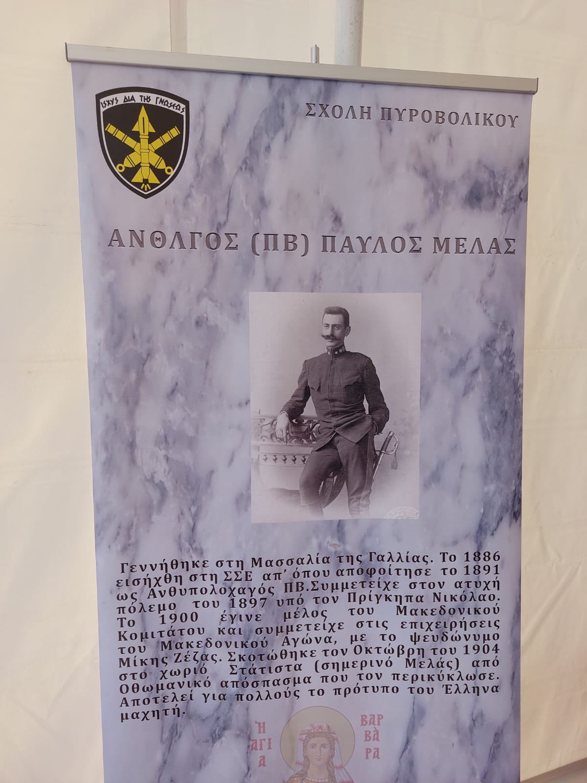 “Σήμερα γιορτάζει η Αγία Μεγαλομάρτυς Βαρβάρα και μαζί της γιορτάζουν οι Πυροβολητές μας, που την έχουν ως Προστάτιδά τους.