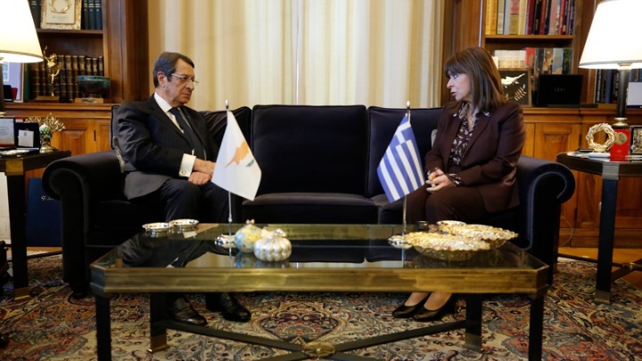 Η κ. Σακελλαροπούλου ευχαρίστησε τον κ. Αναστασιάδη για τη στενή συνεργασία τους και τον διαβεβαίωσε ότι «όπως και στο παρελθόν, αλλά και στο μέλλον, η στενή συνεργασία Ελλάδας και Κύπρου αποσκοπούσε και θα αποσκοπεί στην επίτευξη συμφωνημένης λύσης στο πλαίσιο των αποφάσεων του Συμβουλίου Ασφαλείας των Ηνωμένων Εθνών».