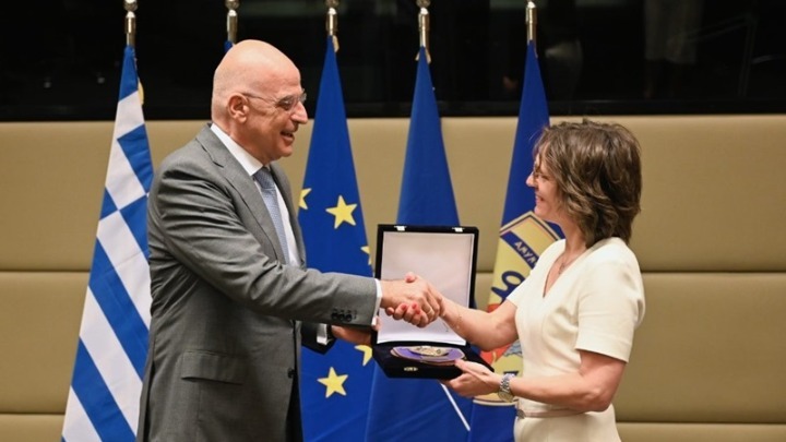 Greek National Defense Minister Nikos Dendias met at the ministry with visiting Minister for European Union Affairs of Sweden Jessika Roswall on Monday.