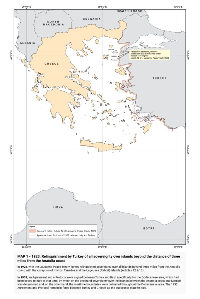 As the announcement explained, the maps begin chronologically with the status quo enshrined in the Lausanne (1923) and Paris (1947) Treaties.