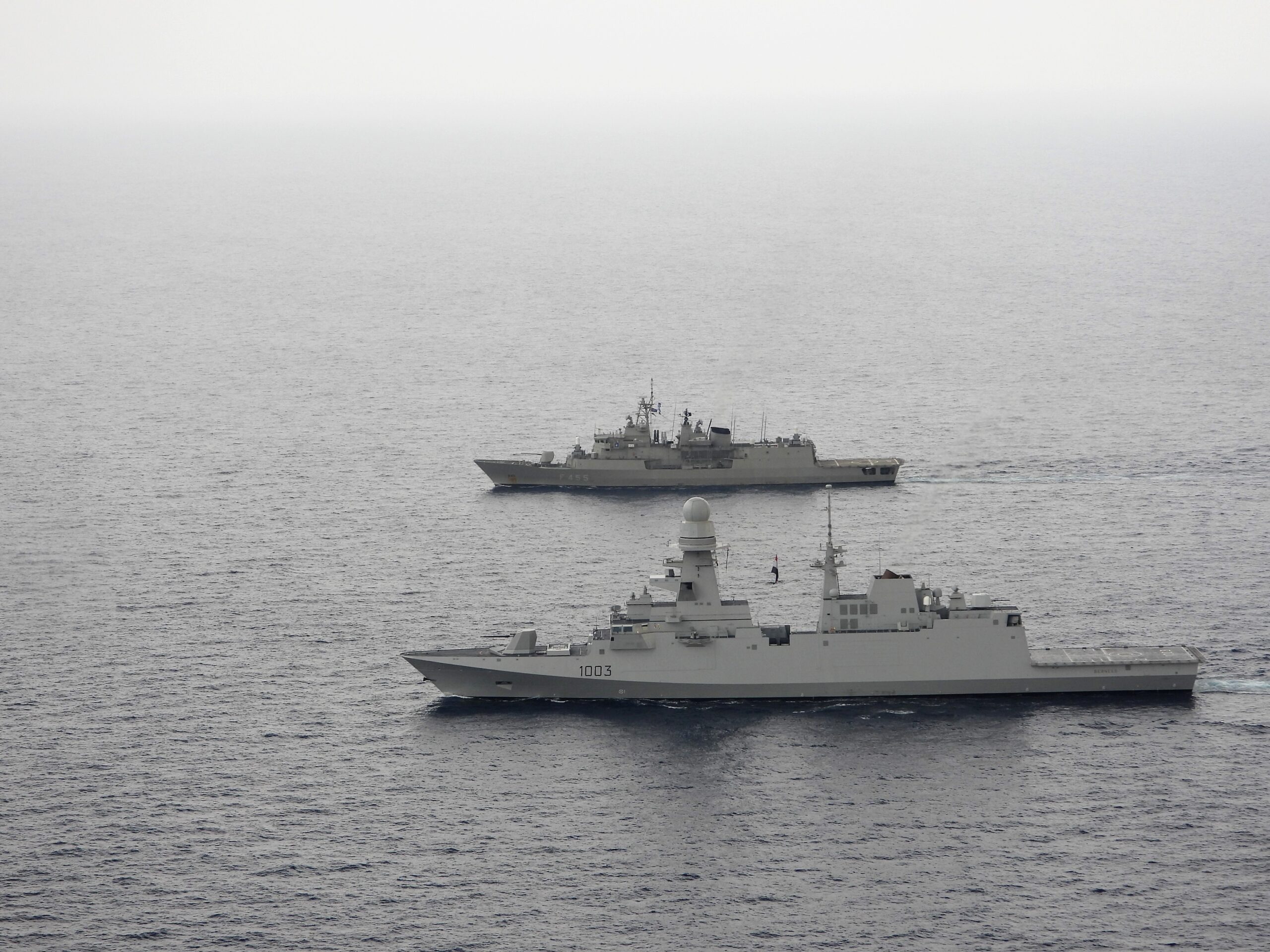 Ξύνουμε πληγές (ο υπογράφων τουλάχιστον) αλλά καλό μας κάνει. Φωτογραφίες λοιπόν από την συνεκπαίδευση PASSEX (Passing Exercise) που έγινε την περασμένη Παρασκευή 2 Δεκεμβρίου, βόρεια της Αλεξάνδρειας στην Αίγυπτο, μεταξύ μιας ελληνικής φρεγάτας ΜΕΚΟ, της «Σαλαμίς» και μιας αιγυπτιακής FREMM, της ENS Bernees. Η τελευταία ήταν η ιταλική Emilio Bianchi, τύπου Bergamini (η ιταλική εκδοχή της σχεδίασης FREMM) που από την γραμμή παραγωγής -ήταν σε τελικό στάδιο- πέρασε στο Αιγυπτιακό Ναυτικό, μαζί με μια ακόμη, την Spartaco Schergat, η οποία μετονομάστηκε σε Al Galala.