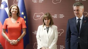 President of the Hellenic Republic Katerina Sakellaropoulou arrived at Bled on Monday for the Bled Strategic Forum, at the invitation of Slovenian President Natas Pirc Musar.