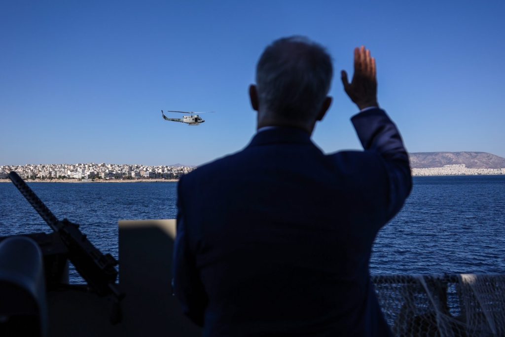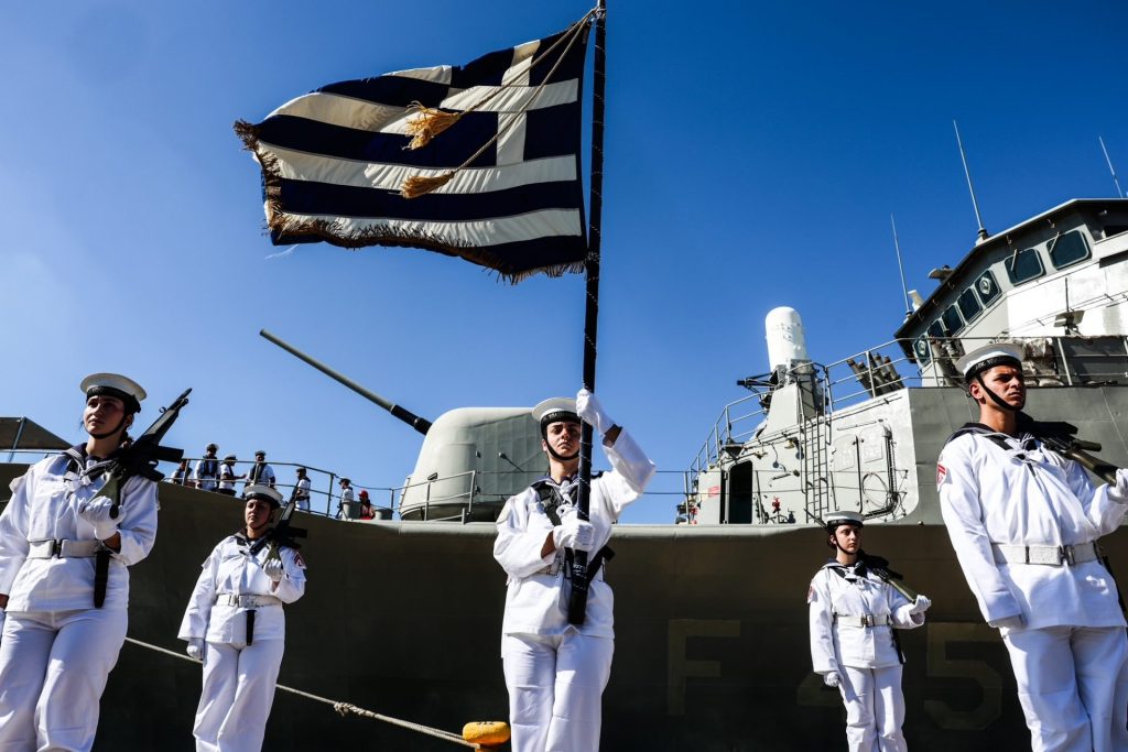 Ήθελα, μετά από αυτή την επιθεώρηση τη συγκινητική, την επιθεώρηση η οποία δημιούργησε μια ανάταση ψυχής, την επιθεώρηση η οποία επιβεβαίωσε ότι το Πολεμικό μας Ναυτικό αναμετράται με την ιστορία και ανταποκρίνεται σε αυτή την αναμέτρηση, εκσυγχρονίζεται, βελτιώνεται, καινοτομεί και πολύ σύντομα ενισχύεται με νέες, σύγχρονες, πρώτης γραμμής φρεγάτες, αποτελεί μια από τις αιτίες, μια από τις βασικές αιτίες που η Ελλάδα είναι πυλώνας σταθερότητος, σιγουριάς, ασφάλειας και ισορροπίας σε μια ευρύτερη περιοχή, η οποία μαστίζεται από γεωπολιτικές ανησυχίες, από γεωπολιτικές εξάρσεις, από γεωπολιτικές εντάσεις και συγκρούσεις.