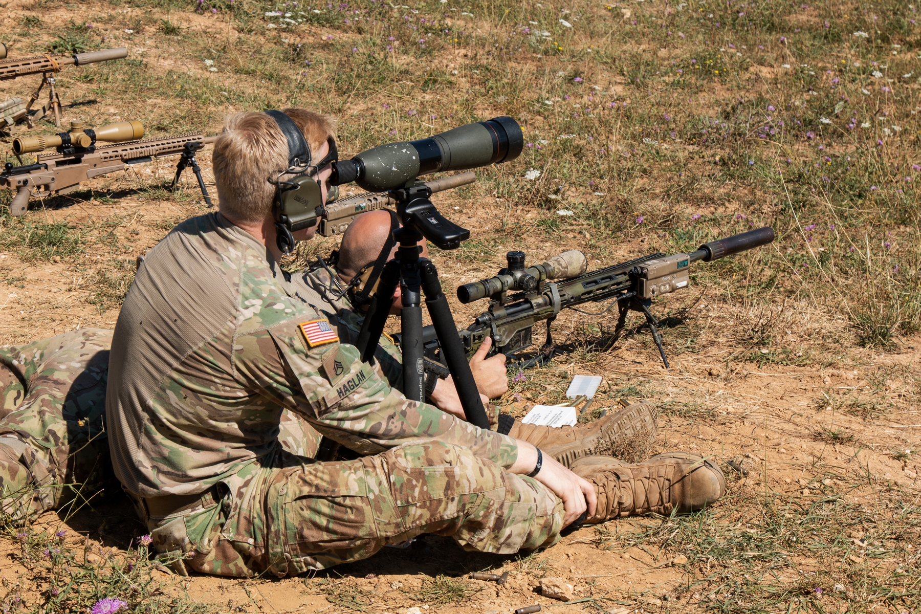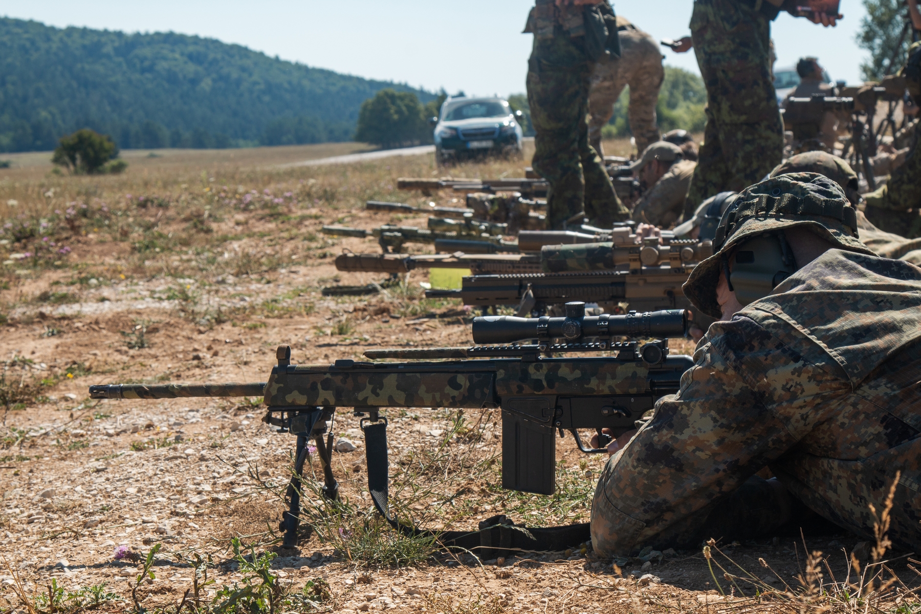 Soldiers fire at targets to zero their rifles during the zeroing phase of the 2022 European Best Sniper Competition in the Hohenfels Training Area, Germany, August 4, 2022. 36 sniper teams from 18 Allied and partner countries will compete head-to-head for the title of Best Sniper Team in Europe across eight days. (U.S. Army photo by Spc Christian Carrillo)Soldiers fire at targets to zero their rifles during the zeroing phase of the 2022 European Best Sniper Competition in the Hohenfels Training Area, Germany, August 4, 2022. 36 sniper teams from 18 Allied and partner countries will compete head-to-head for the title of Best Sniper Team in Europe across eight days. (U.S. Army photo by Spc Christian Carrillo)