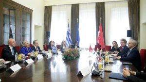 Family Policy & Social Cohesion Minister Sofia Zacharaki and Türkiye’s Foreign Affairs Minister Hakan Fidan signed an MoC on promoting cooperation to develop strategies and services for equal access and inclusion of people with special needs in the social fabric. This includes the exchange of good practices and know-how in the field of social welfare, the organization of conferences and seminars for the elimination of inequalities, the improvement of accessibility, as well as the care and deinstitutionalization of people with special needs.