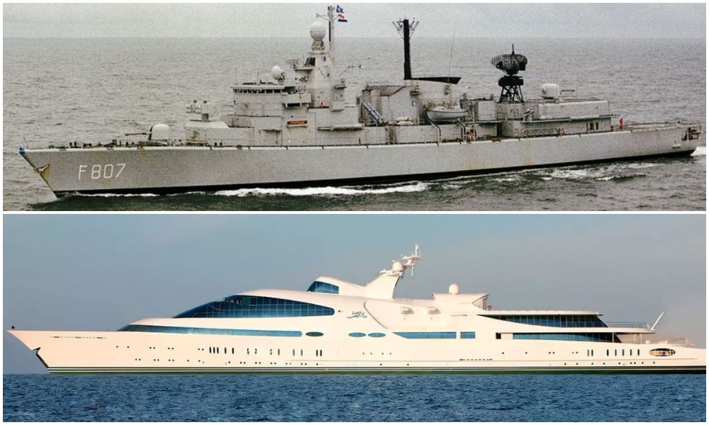 Με μήκος 141 μέτρα, το Yaz είναι ένα “εξωτικό” σούπερ γιοτ διότι χτίστηκε πάνω στο σκάφος ενός πολεμικού πλοίου.