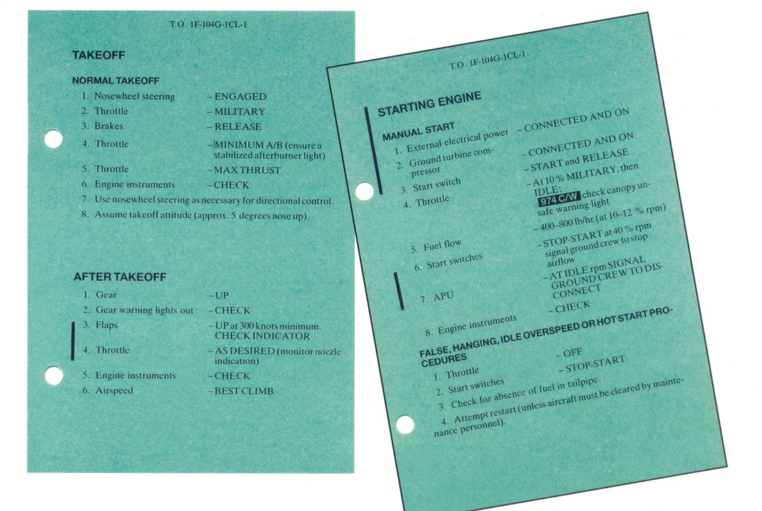 «Ήταν λάθος να βάζεις στα F-104 χειριστάς των 200-300 ωρών» μού έλεγε με έμφαση σε μια συνέντευξη ο αείμνηστος Αντιπτέραρχος Γ. Βαγιακάκος. «Όταν κάποια φορά μου στείλανε δύο-τρεις άπειρους χειριστές, είπα στείλτε τους σε Μοίρες και μετά από 200 ώρες ξαναστείλτε τους. Και ήμουν σαφής σε αυτό. Η αίσθηση της πτήσεως ήταν τελείως διαφορετική απ’ ότι με το F-84F γι’ αυτό και πιλότοι χωρίς επαρκή πτητική εμπειρία είχαν ατυχήματα με το Starfighter. Οι Γερμανοί ειδικά είχαν το ένα ατύχημα πίσω από το άλλο…»