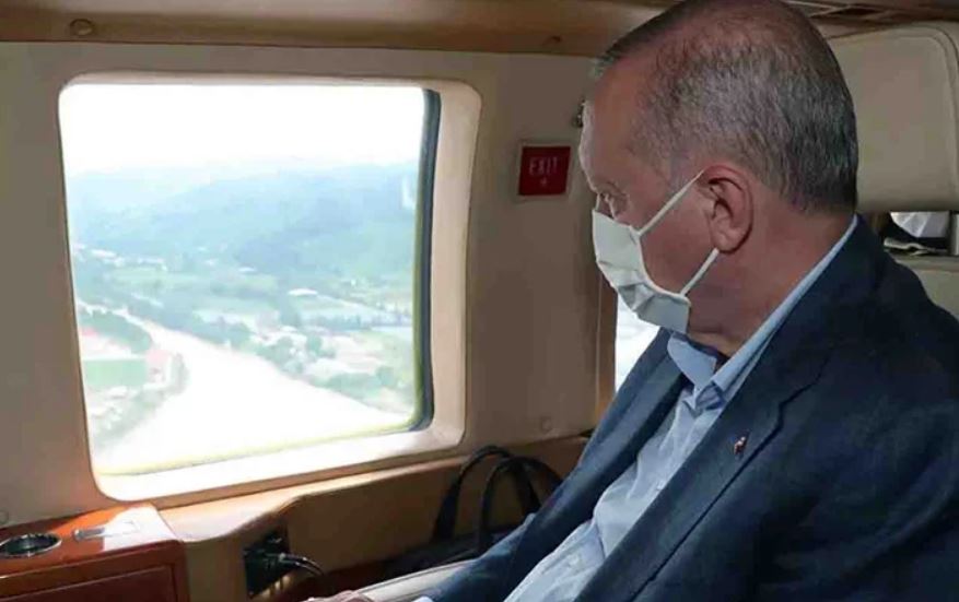 Ο Τούρκος πρόεδρος Ρετζέπ Ταγίπ Ερντογάν απογειώθηκε με ελικόπτερο για να μεταβεί στις πόλεις Rize και Büyükköy, μετά από επίσκεψή του στην περιοχή Arhavi του Artvin, λόγω της σφοδρής κακοκαιρίας που έπληξε την περιοχή.