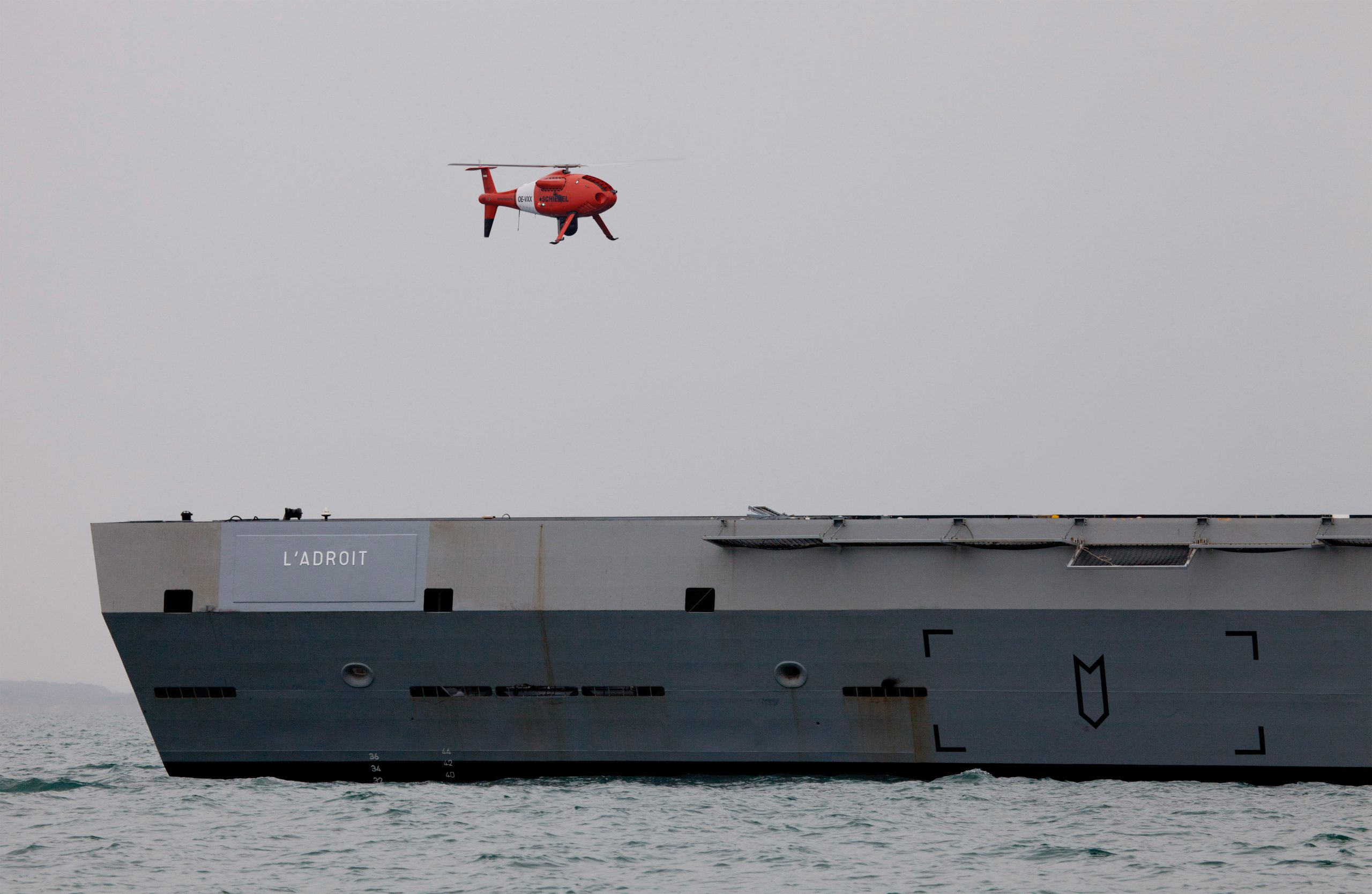 S-100 ίπταται πάνω από το ελικοδρόμιο του OPV L’ Adroit, κλάσης Gowind.