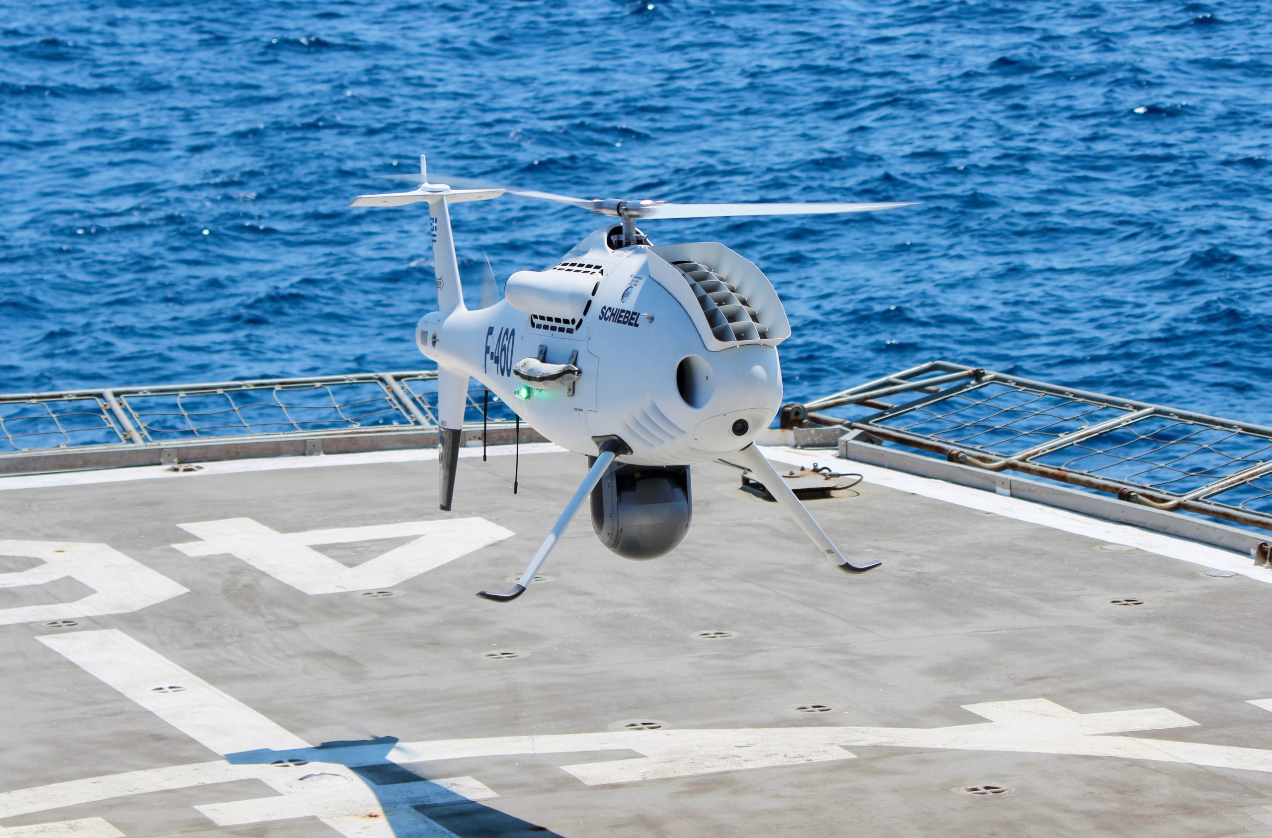 S-100 από τις δοκιμές του 2021 με τη φρεγάτα F-460 ΑΙΓΑΙΟΝ, πηγή Schiebel.net
