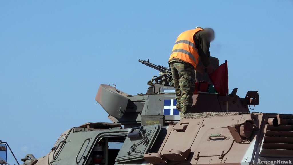 Τα ελληνικά M1117 ASV όχι μόνο έχουν φτάσει στα νησιά, αλλά οι Μονάδες τα αξιοποιούν με κάθε μέσο και τρόπο. Σε φωτογραφίες που ανέβασε ο εξαιρετικός @AegeanHawk, διακρίνεται ελληνικό Μ1117, οπλισμένο με πολυβόλο MG-3, να ετοιμάζεται για βολές.