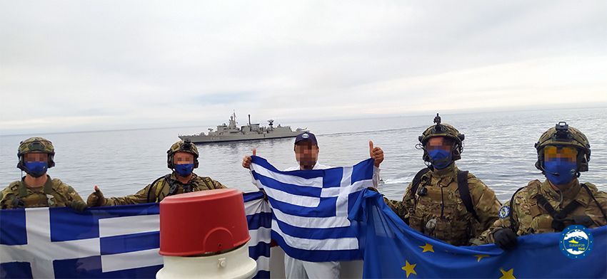 Η φρεγάτα ΑΙΓΑΙΟΝ του Πολεμικού Ναυτικού έχει εκτελέσει την πρώτη της νηοψία πλοίου στη Μεσόγειο Θάλασσα στα πλαίσια της Επιχείρησης Irini.