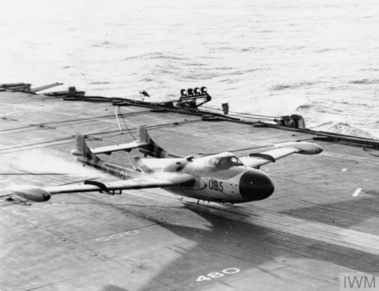 Το χτυπημένο τζετ επέστρεψε με το αεροπλανοφόρο ‘Eagle’ στην Βρετανία αλλά κρίθηκε ότι οι ζημιές μάχης που υπέστη ήταν πολύ μεγάλες για να σωθεί και τέθηκε σε αποθήκευση στον Αεροναύσταθμο HMS Sandling, το σημερινό αεροδρόμιο της Γλασκώβης. Χρησιμοποιήθηκε ως πηγή ανταλλακτικών για άλλα αεροσκάφη του τύπου πριν τελικά διαλυθεί για scrap στις 18 Ιουλίου 1961.