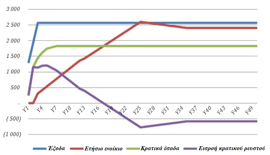 – 1ο ενοίκιο 10%, υπολειμματική αξία 20%, διάρκεια 25 χρόνια