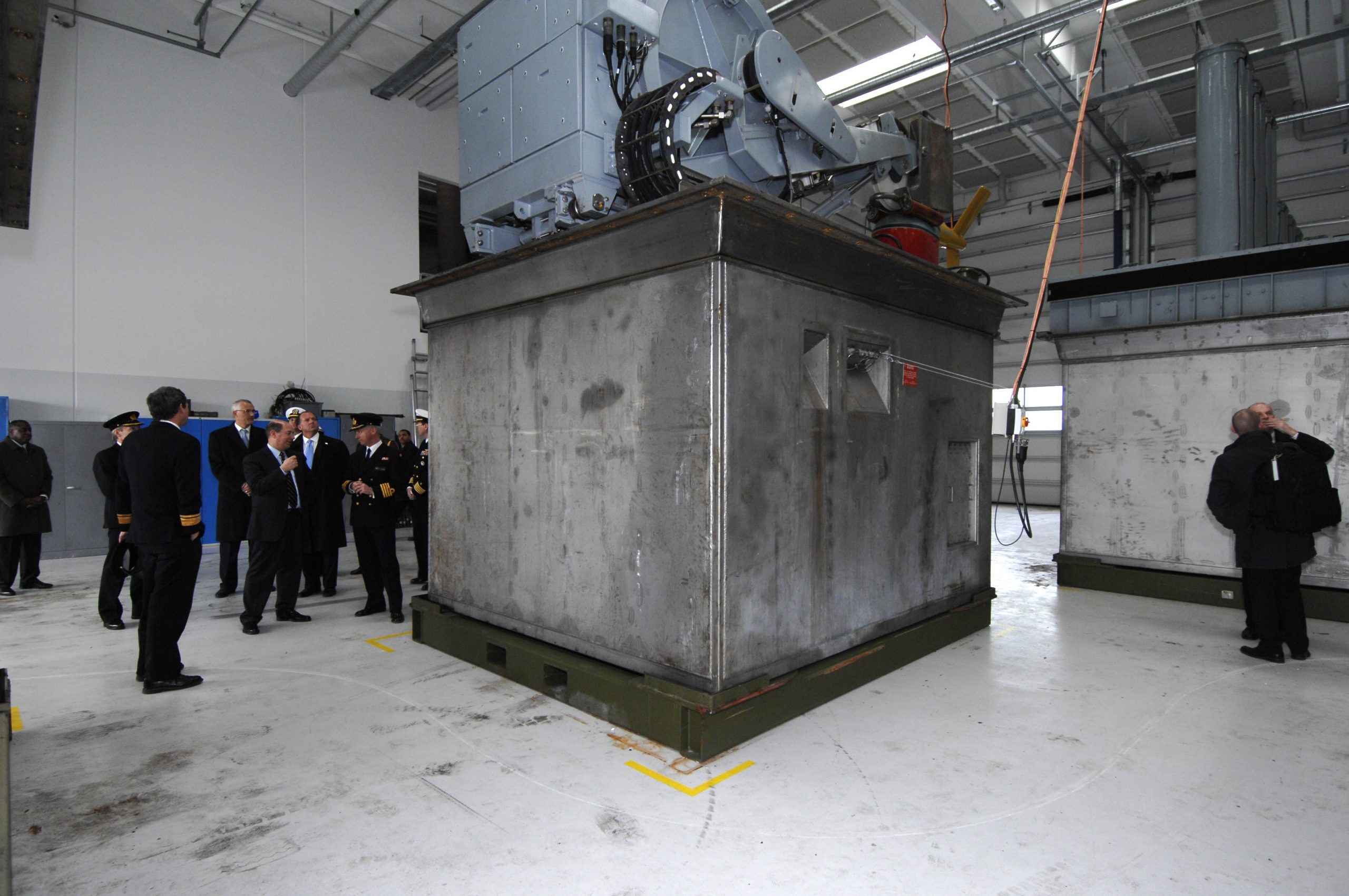 Στο σύντομο βίντεο επιδεικνύεται η εξομοίωση φόρτωσης ενός ταχύπλοου σκάφους που περιλαμβάνεται εντός ενός συγκεκριμένου module αποστολής, από την τυποποιημένη εγκατάσταση ξηράς (με γκρί χρώμα), στο αντίστοιχο σύστημα υποδοχής στο πλοίο (με λευκό χρώμα).