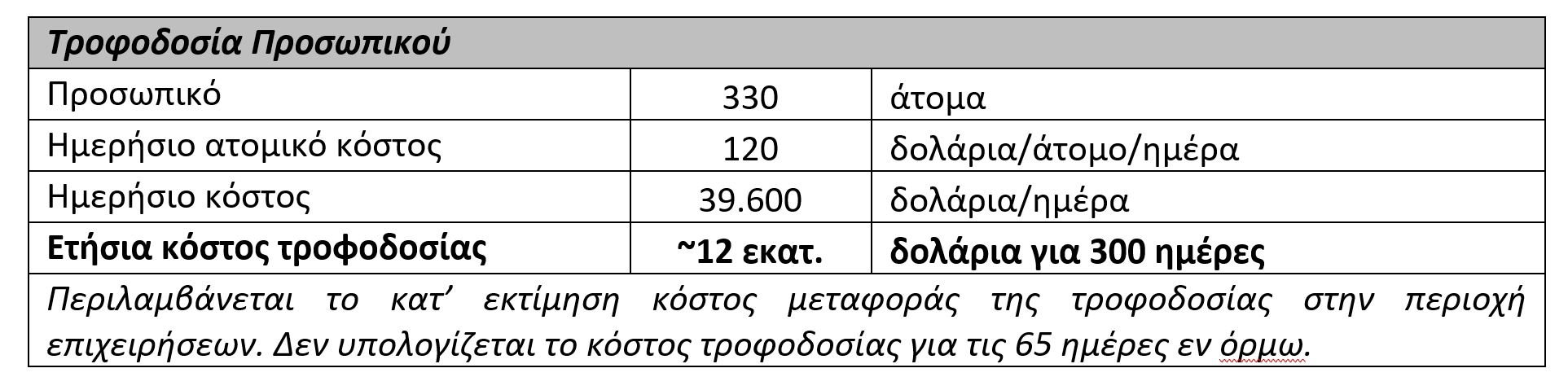 - Προσωπικό. Αφορά το κόστος για τους χειριστές, συντηρητές και άλλο προσωπικό υποστήριξης εντός και εκτός των πλοίων.
