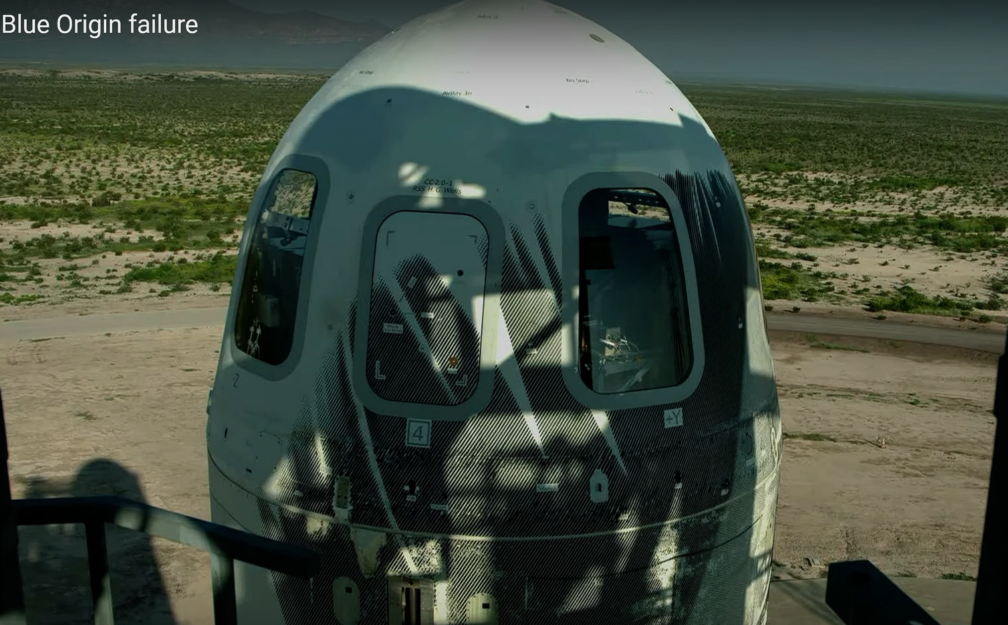 Ένα νέο, μεγαλύτερης διάρκειας βίντεο για την αστοχία της πρόσφατης, μη επανδρωμένης δοκιμης του συστήματος παραβολικών πτήσεων Blue Origin.