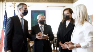 Στην ειδική τελετή παρέστησαν επίσης ο Αμερικανός πρέσβης στην Αθήνα Τζέφρι Πάιατ και η πρέσβης της Ελλάδας στις ΗΠΑ Αλεξάνδρα Παπαδοπούλου.