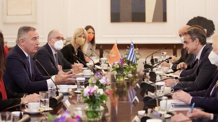 Τη σταθερή υποστήριξη της Ελλάδας στην ευρωπαϊκή προοπτική των Δυτικών Βαλκανίων, εξέφρασε ο πρωθυπουργός Κυριάκος Μητσοτάκης κατά την συνάντησή του με τον Πρόεδρο του Μαυροβουνίου Μίλο Τζουκάνοβιτς, ο οποίος πραγματοποιεί επίσημη επίσκεψη στη χώρα μας. Να σημειωθεί ότι αυτή είναι η πρώτη επίσημη επίσκεψη αρχηγού κράτους του Μαυροβουνίου από την ανεξαρτητοποίησή του, το 2006.