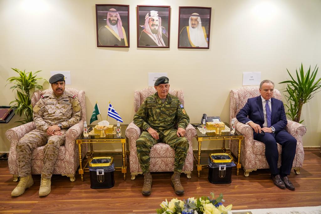 Τέλος, ο Αρχηγός ΓΕΕΘΑ συναντήθηκε και είχε στενή και εγκάρδια συνεργασία με τον Πρέσβη της Ελλάδος στο Ριάντ κ. Αλέξη Κωνσταντόπουλο, ο οποίος τον συνόδευσε στο σύνολο των δραστηριοτήτων της επίσημης επίσκεψής του στο Βασίλειο της Σαουδικής Αραβίας. Είχαν επίσης την ευκαιρία να συζητήσουν για τις διεθνείς εξελίξεις στην ευρύτερη περιοχή, για την περαιτέρω εμβάθυνση των ήδη στενών σχέσεων των 2 Χωρών, καθώς και για την σημαντική δυναμική που αναπτύσσεται τόσο στην βάση της Στρατιωτικής τους Συνεργασίας όσο και ευρύτερα.
